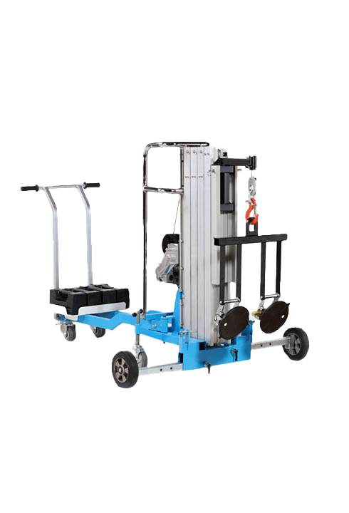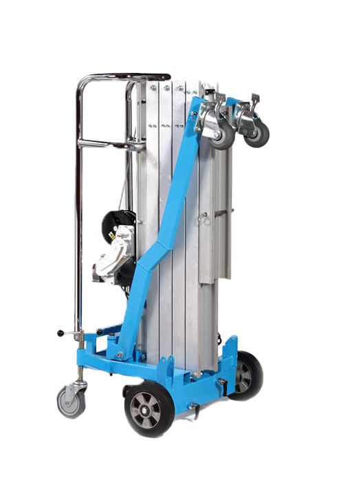 The BD400 electric lifter is ideal for lifting and placing heavy weights even close to walls or windows, capable of lifting up to 4.10 meters in height. Equipped with adjustable wheels with brakes, it can also be used on sloping terrain.