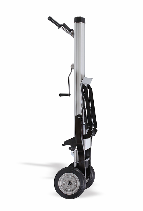 The manual lifter for heavy loads ML 2-P favors the vertical handling of goods up to 120 kg on the platform and 150 kg on the forks, favoring work practices with the intervention of a single operator. With its compact structure in ultra-resistant and scratch-resistant aluminium, the ML 2-P can be used as a moving floor on site or in the workshop at the discretion of the user. In addition, a note of merit is bestowed on the multifunctionality of the design: the structure is opened and stored in a matter of seconds, without the aid of additional machinery. In addition, the 250x70 millimeter wheels are designed to stabilize the transport of the load on rough terrain. The same goes for the position of the winch which is ergonomic to the touch and comfortable even in the most intense handling sessions. The advantages are, therefore, many: on the one hand, the manual lifter for industrial loads ML 2-P is designed to handle fragile, heavy and/or bulky goods with a minimum waste of space and, on the other, the intuitive contributes to the prevention of the operator's health.