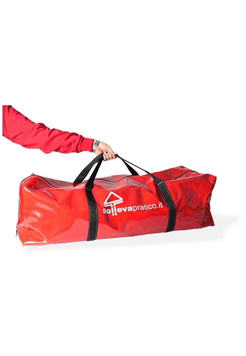 Praticissima sacca rossa ideale per il trasporto del Sollevatore CM 340, la borsa è prodotta con un materiale resistente evitando così che il contenuto si danneggi durante il trasporto.