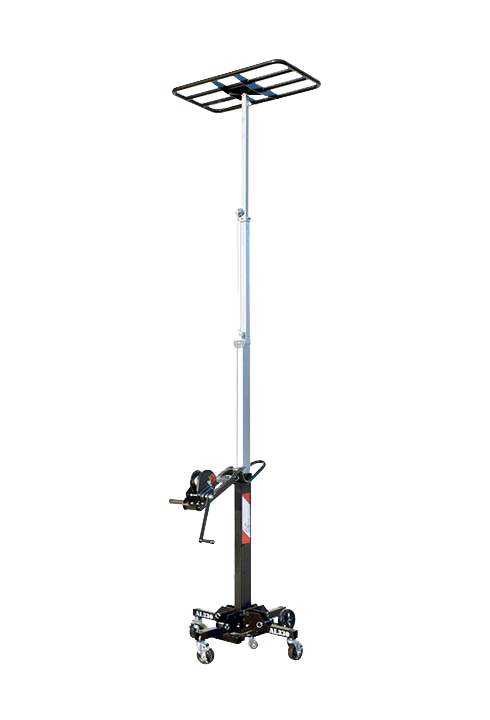 Il sollevatore manuale AL 330 è il fedele compagno di lavoro per la movimentazione e installazione di condizionatori moto condensanti unità esterna, tende da sole, pergole, canalizzazioni d’aria e carichi con peso complessivo fino a 130 kg. Il design compatto con corpo in acciaio anti-torsione raggiunge un’altezza di 3,3 metri. Inoltre, le pulegge in acciaio, le dimensioni della piattaforma di 770 x 460 millimetri e la praticità della struttura rendono il sollevatore manuale telescopico AL 330 uno strumento indispensabile, nonché facilmente trasportabile su tutti i veicoli professionali grazie ai piedini con ruote di 100 mm dotate di freno. Il macchinario non necessita assemblaggi o montaggi complessi: è sufficiente poggiare il dispositivo a terra, aprire le quattro gambe per stabilizzare il corpo macchina, alloggiare la piattaforma e azionare l’argano.