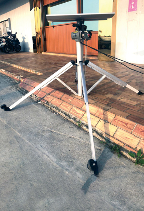 • Ruote di serie sotto palo centrale e sotto ogni gamba stabilizzatrice, per garantire la mobilità anche successivamente al posizionamento