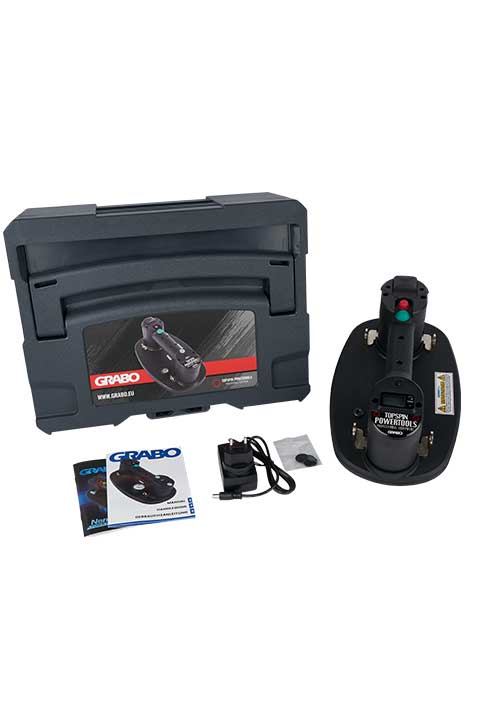 Il kit GRABO PLUS HC è compatto e il funzionamento è semplice. Include un'unità completa con una guarnizione preinstallata. Nel kit sono forniti anche una batteria CC da 11,1 volt e un caricabatterie.